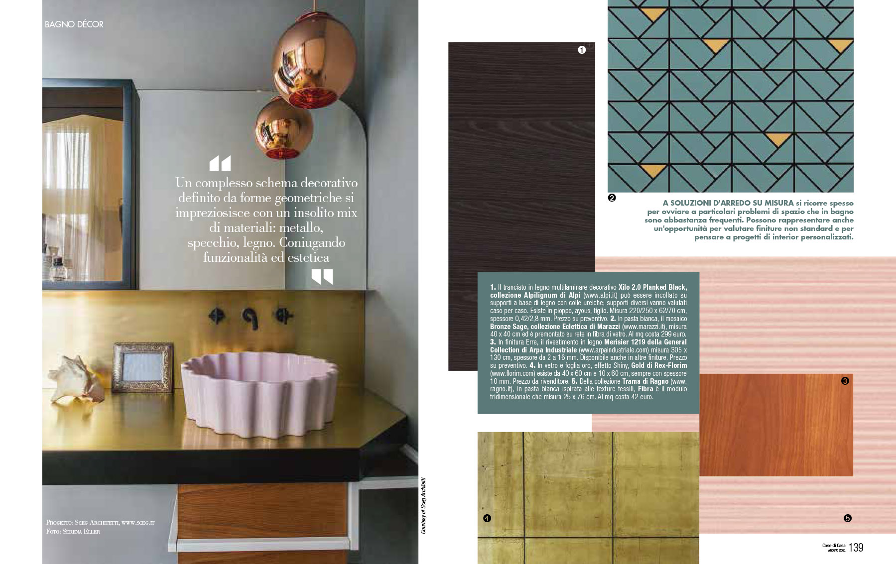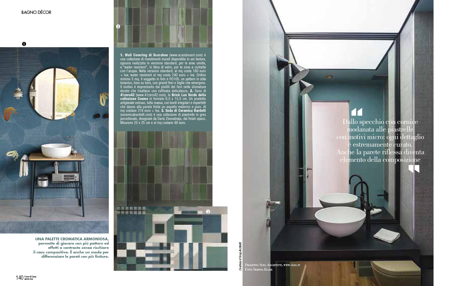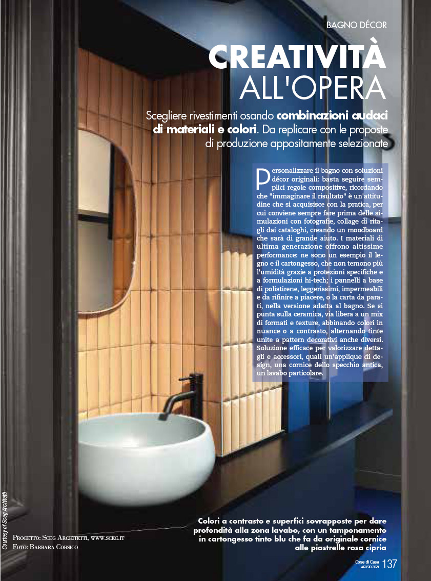 COSE DI CASA: BAGNO DECOR COSEDICASA / August 2021 / Italy “Creatività all’opera” Scegliere rivestimenti asando combinazioni audaci di materiali e di colori. << Torna alle news Ti è piaciuto questo articolo? condividilo! << Torna alle news