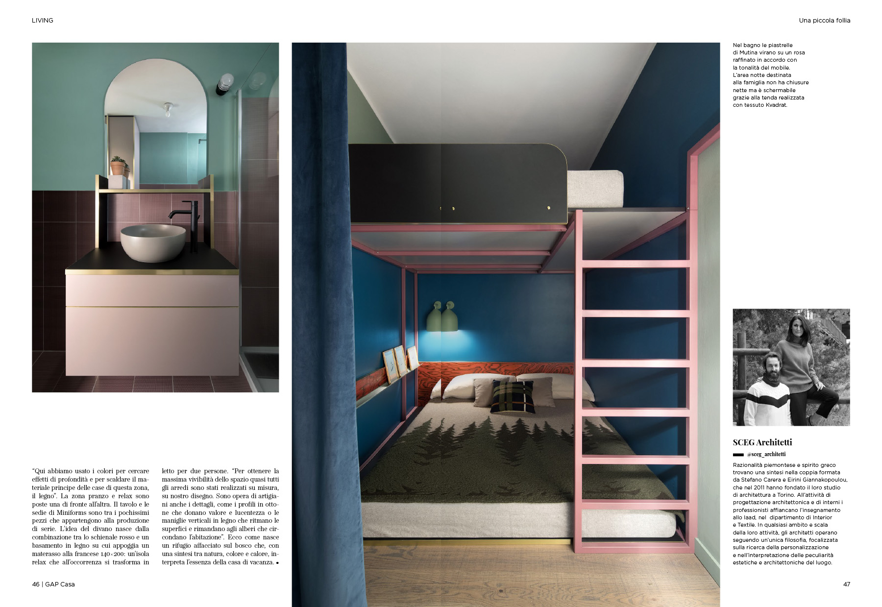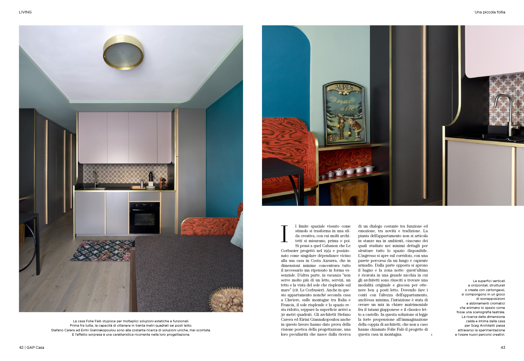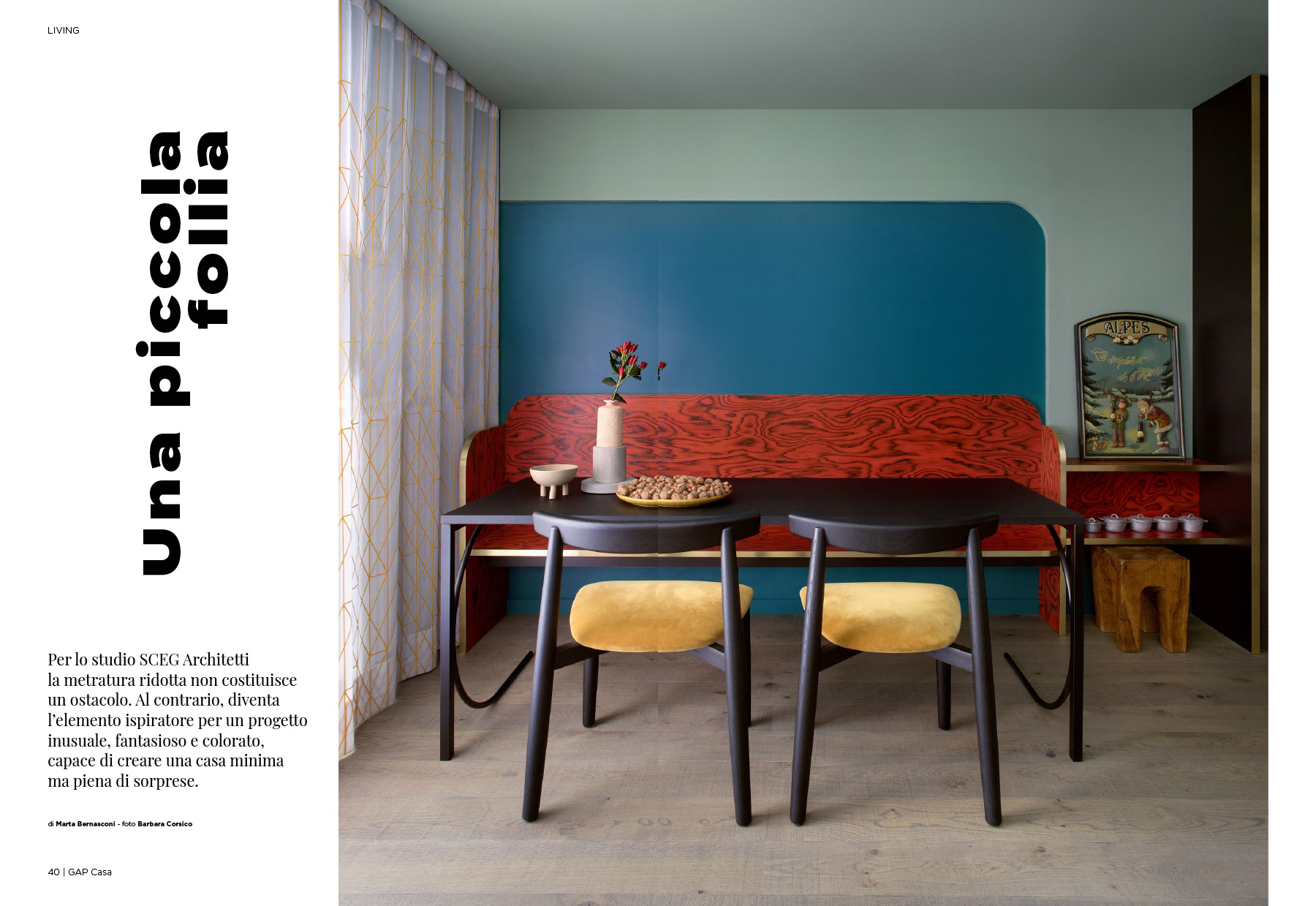 “Per lo studio SCEG Architetti la metratura ridotta non costituisce un ostacolo. Al contrario, diventa l’elemento ispiratore per un progetto inusuale, fantasioso e colorato, capace di creare una casa minima ma piena di sorprese.”