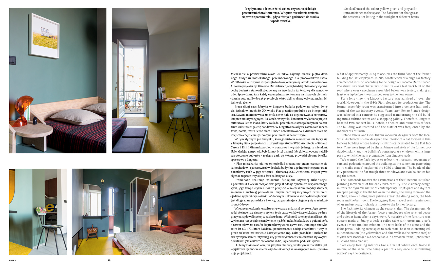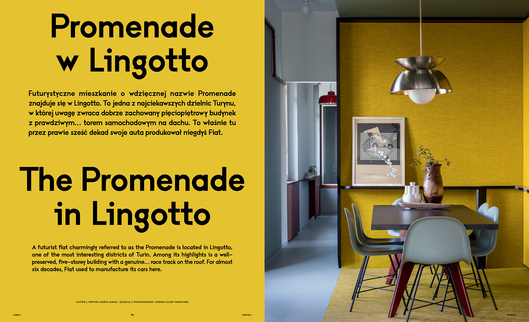 “A futurist flat charmingly referred to as the Promenade is located in Lingotto, one of the most interesting districts of Turin. Among its highlights is a wellpreserved, five-storey building with a genuine… race track on the roof. For almost six decades, Fiat used to manufacture its cars here.”