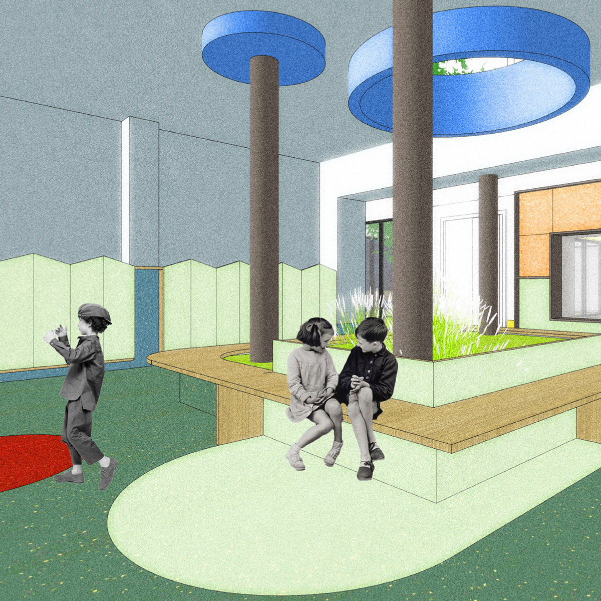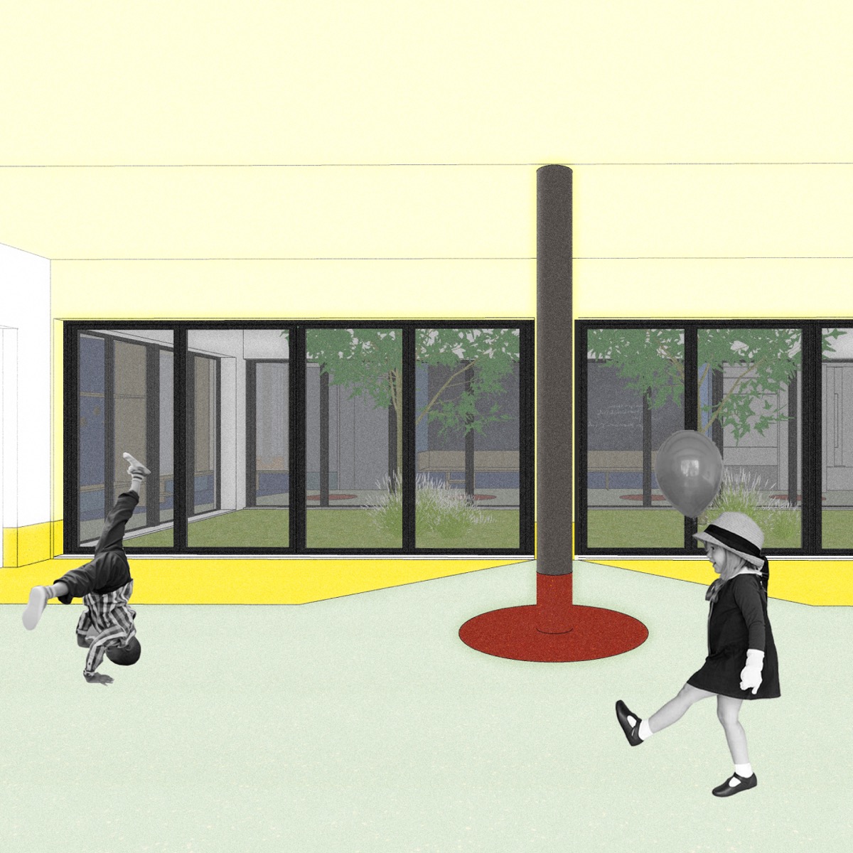 Il progetto ha il desiderio di costruire luoghi che sappiano rappresentare una nuova identità, che offrano una qualità di vita e di relazione superiore per i bambini e che rappresentino un modo di vivere più attento alle risorse e alle necessità dell’ambiente. Partendo dalle caratteristiche della scuola attuale, l’intervento proposto è fatto di nuovi spazi interni vivaci caratterizzati da sequenze armoniose luminose e suggestive.