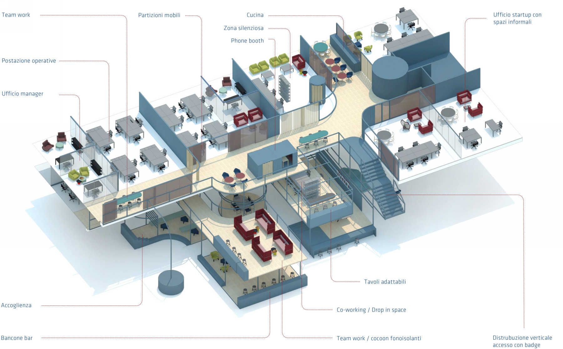 allestimento di una rete leggera ed indipendente che definisce spazi flessibili e adattabili alle necessità dell’azienda;