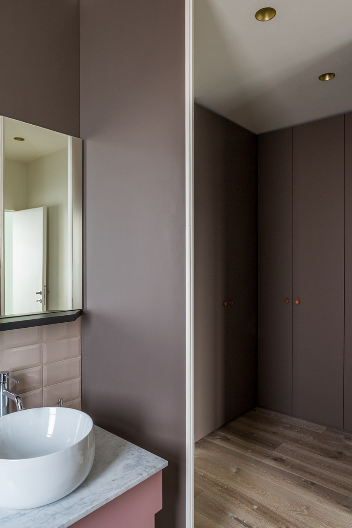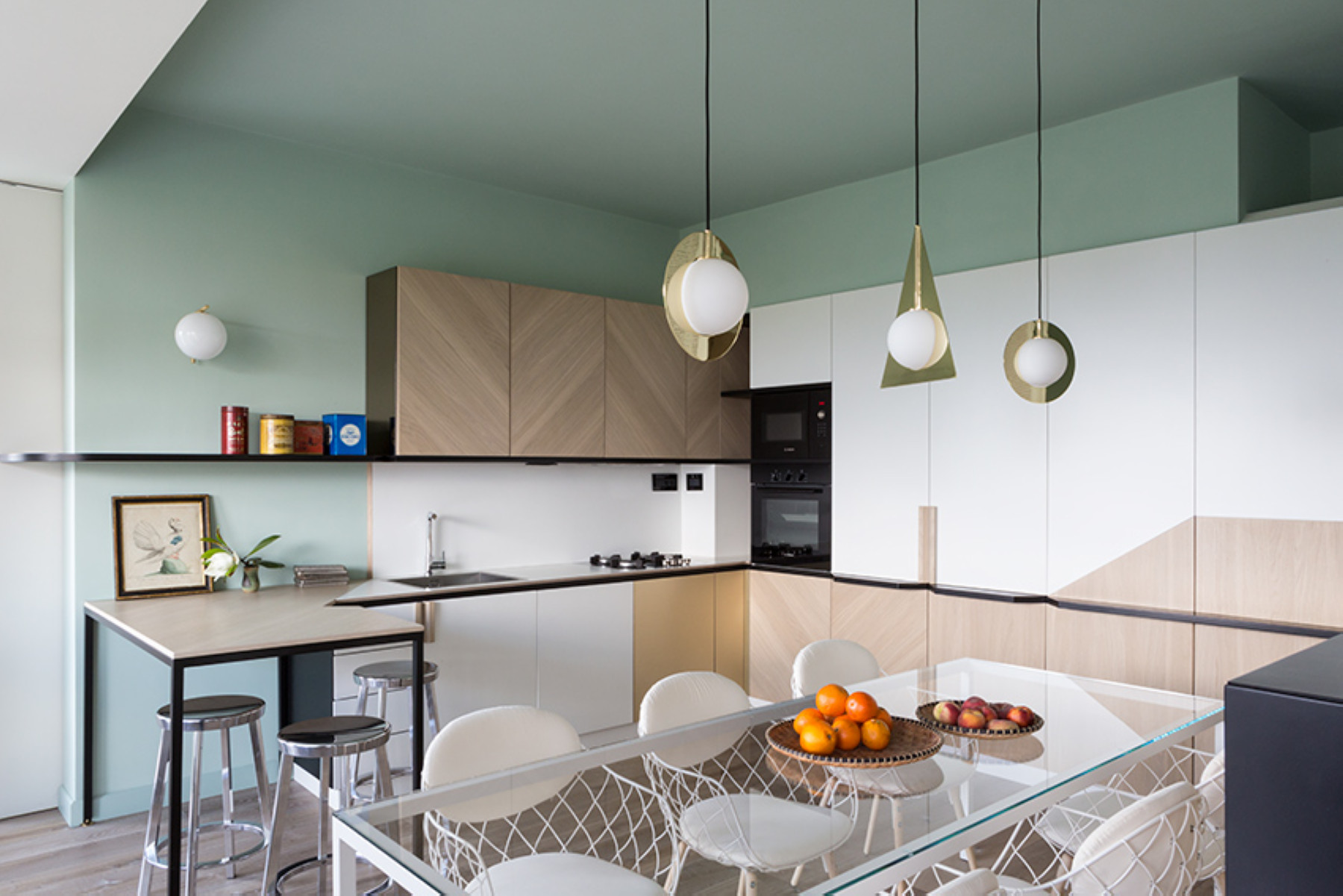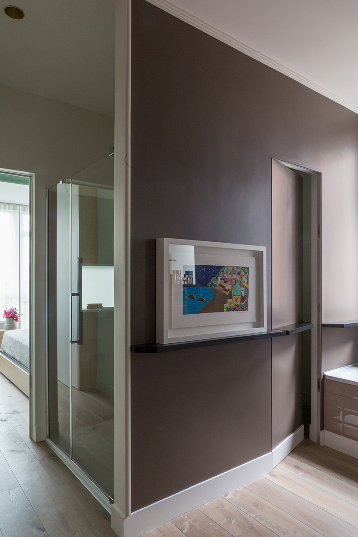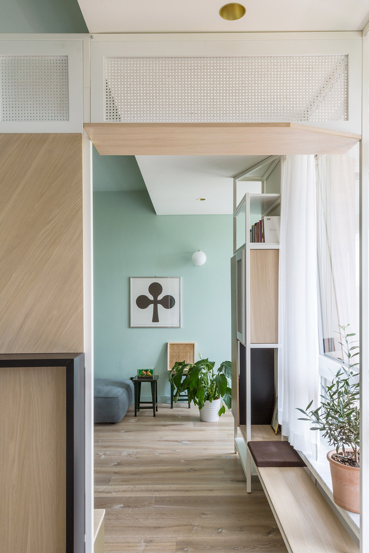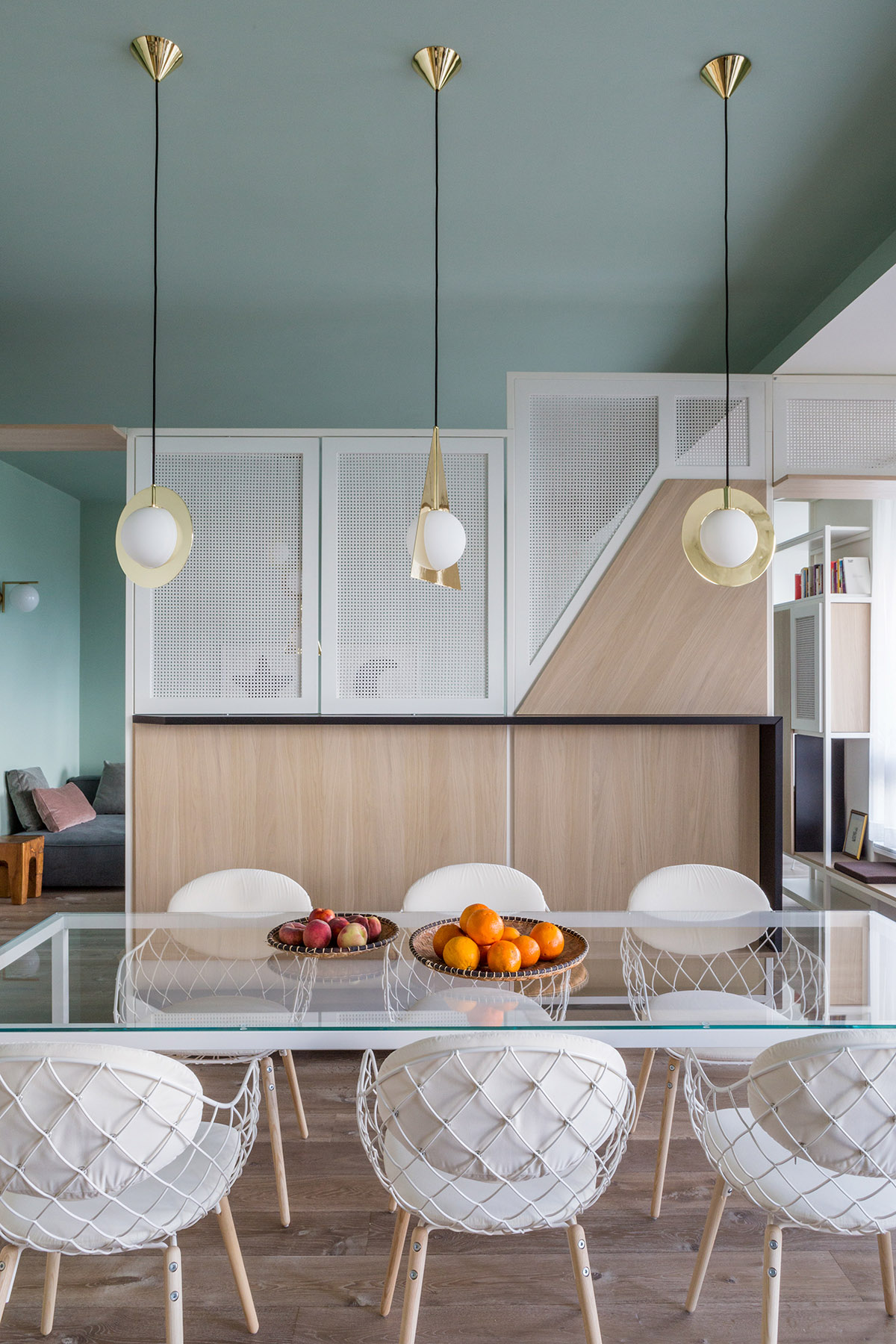 Un appartamento caratterizzato dalle grande vetrate sul parco Ruffini in corso Montecucco a Torino. Una parete che cerca di mettere in contatto la vista con la vita della casa. Una libreria-contenitore-panca-porta tende, tutta realizzata su misura, “riveste” i vetri e porta l’abitante della casa in quotidiano contatto con la finestra e con la vista. Una composizione che trova sviluppo su tutta la casa e diventa separé-mobile tv, cucina-boiserie, letto. L’uso della paglia di Vienna laccata bianca, offre leggerezza e trasparenza alla struttura, e reinterpreta la classicità e la tradizione con un uso contemporaneo.